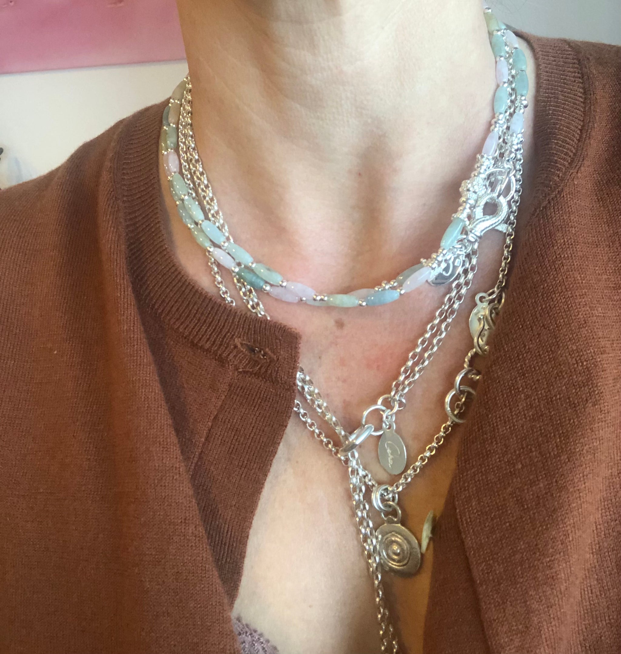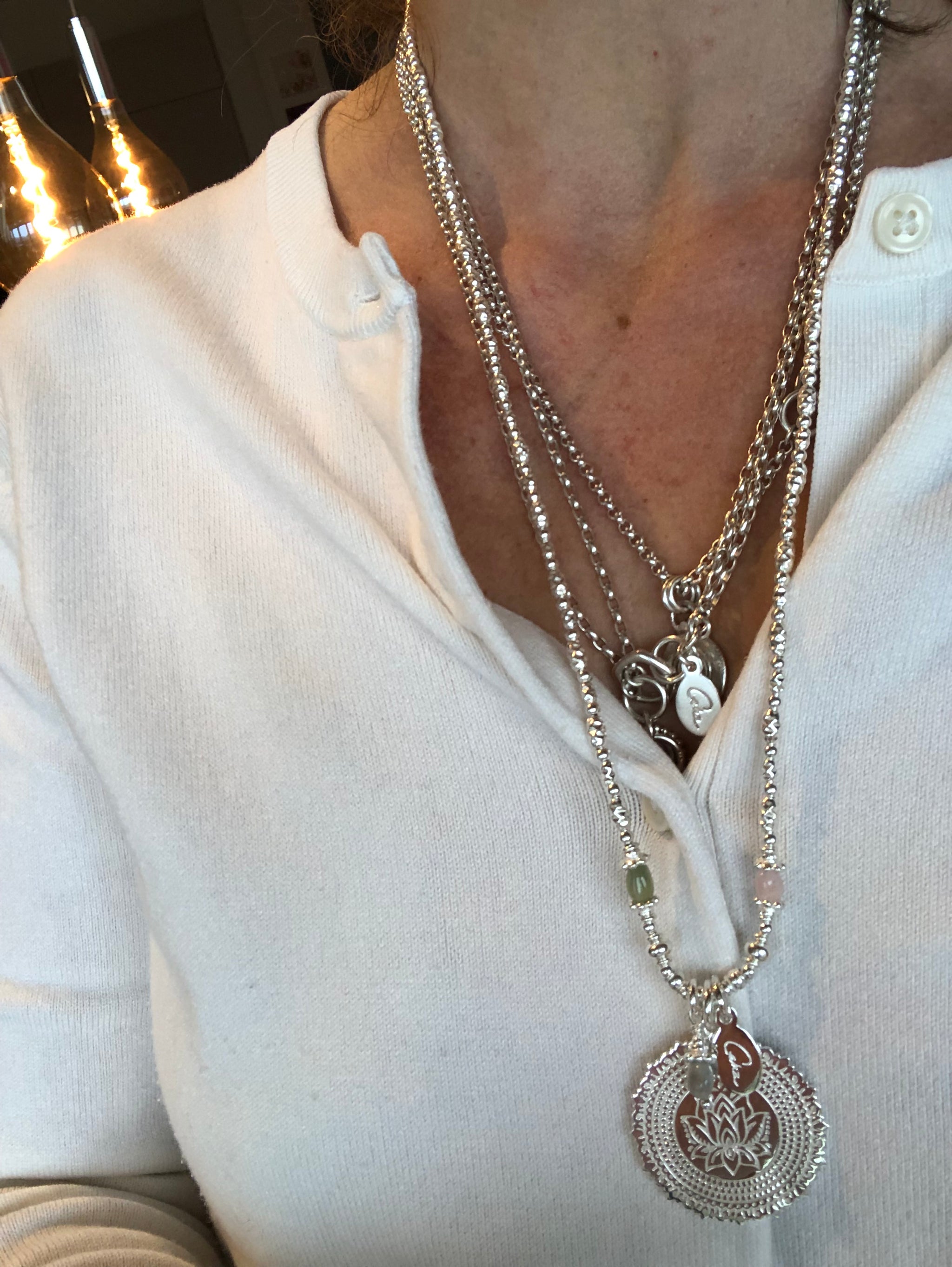 Liebe Corinne, deine Kette ist angekommen und so wunderwunderschön. Sie wird mein täglicher Begleiter sein.